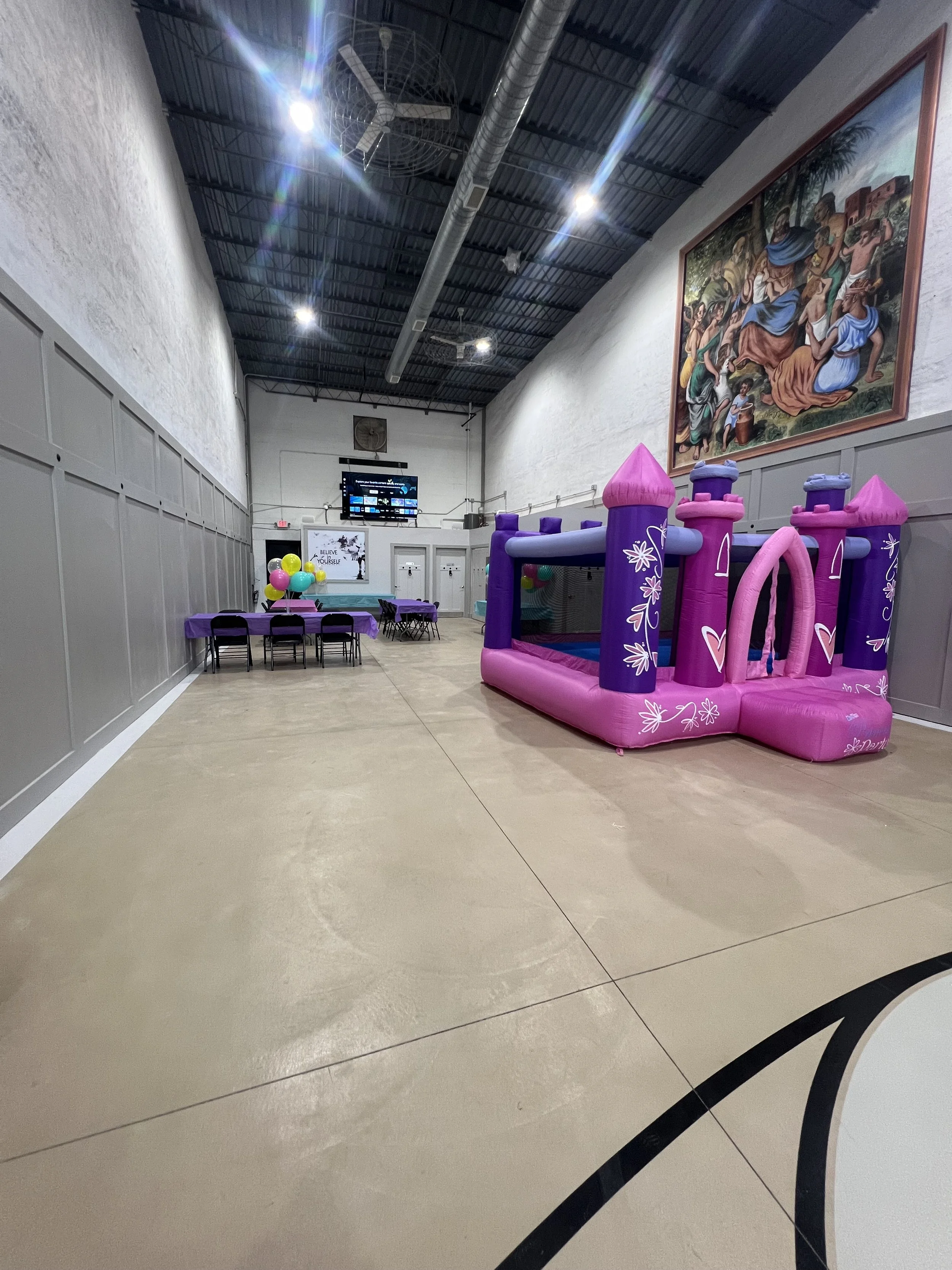 For your convenience, the venue includes two restrooms and ample space to create the perfect setting for your event. We also offer additional options, such as bounce house rentals, cornhole, nerf gun rentals and access to our basketball hoop, so you can enhance the fun and variety of your gathering.